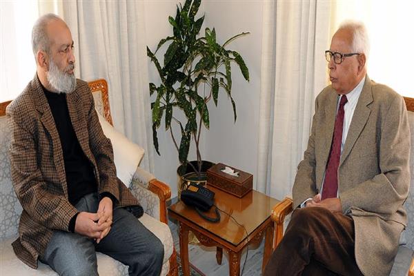 JAMMU, MARCH 05: Dr. Khurshid Andrabi, Vice Chancellor, University of Kashmir met Governor N.N. Vohra, Chancellor of the University, at the Raj Bhavan here today.