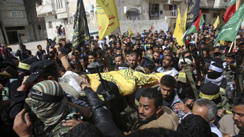 Thousands attended funerals for 14 of those killed — two were buried yesterday — with mourners holding Palestinian flags and some chanting “revenge” and firing into the air.