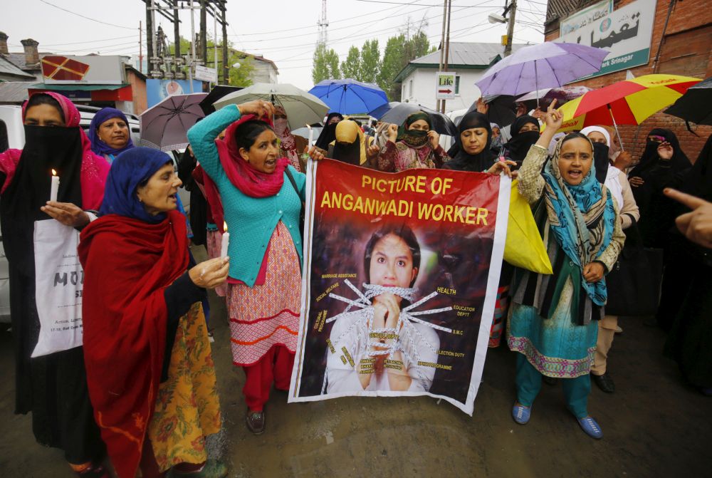 [caption id="attachment_14400" align="alignnone" width="713"]<img class=" wp-image-14400" src="https://archive.thekashmirimages.com/wp-content/uploads/2018/04/ANGANWARI-300x201.jpg" alt="" width="713" height="478" /> Anganwari workers take again to streets pressing for fulfillment of their demands. Photo/Javed Khan[/caption]