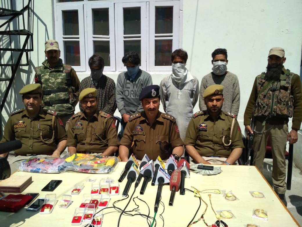 Srinagar, April, 13: During a special development Police Station Saffakadal and MR Gunj busted a gang of burglars who were on prowl to loot jewelry and other precious belongings from the ladies and old age people in different areas of Srinagar city and it’s outskirts.