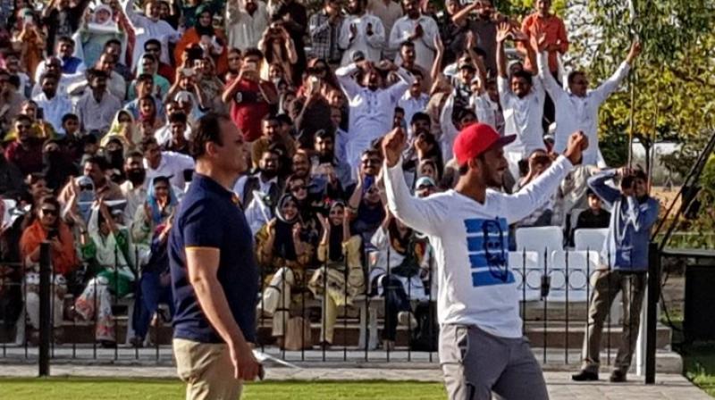 The video showed the Pakistan pacer patting his thighs and raising his arms before breaking into the kind of unique celebration he does on the cricket field after claiming a wicket, as soldiers from Pakistan Rangers stood in the background. He was later escorted back by a man in civilian clothes amid thunderous applause from the audience.