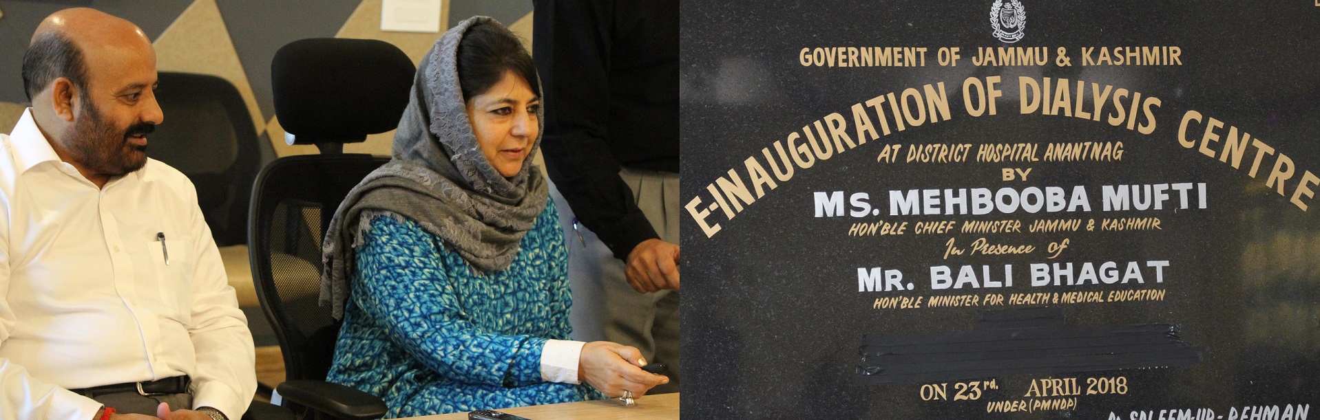 SRINAGAR, APRIL 23: Chief Minister, Mehbooba Mufti e-inaugurated a separate Dialysis facility for Anantnag District Hospital here today which shall benefit around five hundred patients of the South Kashmir region. Directions for setting up of such facility were issued by the Chief Minister during her Public Outreach programme at Anantnag on November 11, 2017, a government press release said.