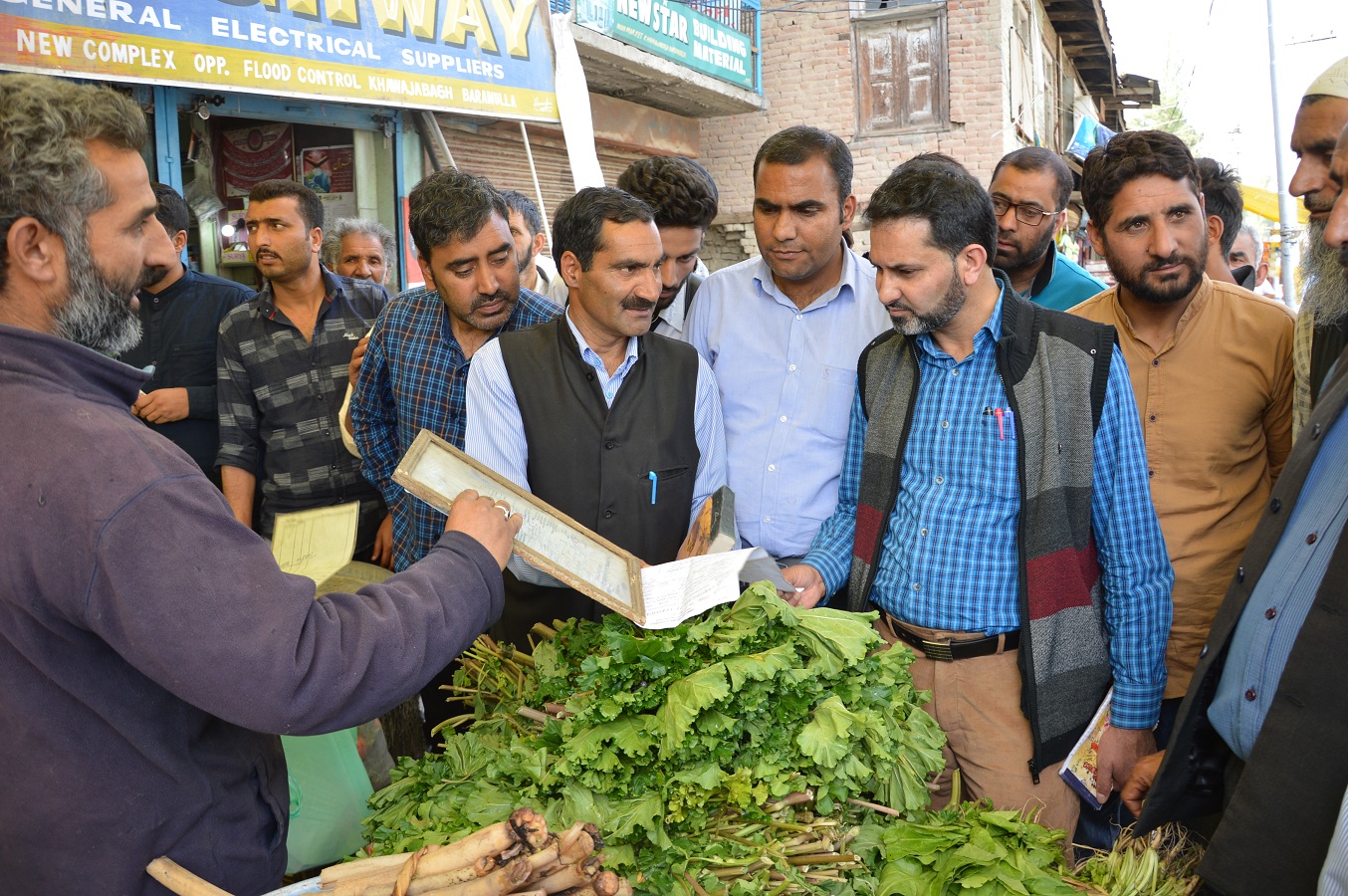 BARAMULLA, MAY 23: Additional Deputy Commissioner Baramulla, Farooq Ahmad Baba, accompanied by officers from Revenue, FCSCA, Metrology, Food Safety, Municipal Council and Police departments today conducted market checking at various areas.
