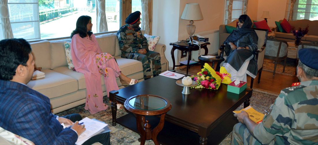SRINAGAR, JUNE 02: Director General, Border Roads Organisation, Lt. Gen. Harpal Singh, called on the Chief Minister, Mehbooba Mufti here today and discussed several projects under execution in the State by his organization.