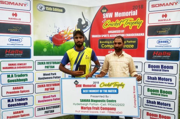 Zahoor Lala was declared as Man of the match for his quick fire 56 and took 1 wicket.