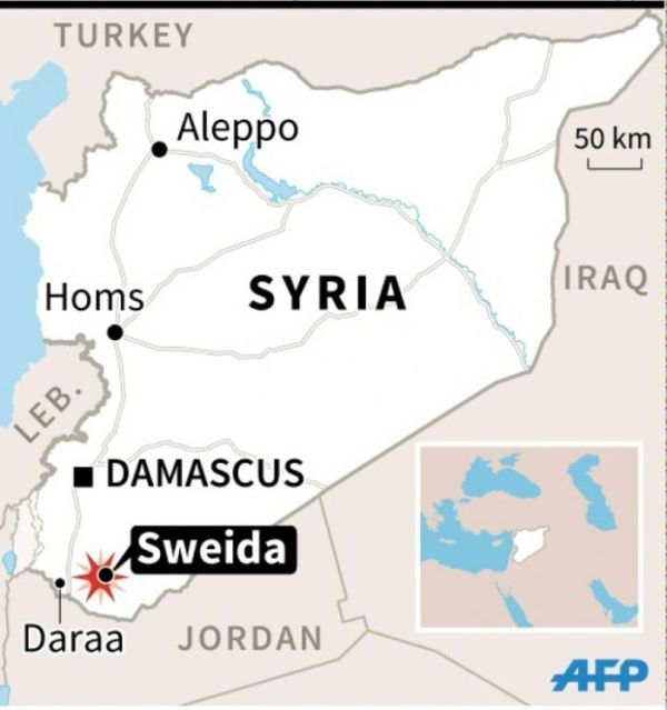 The Britain-based Observatory said three suicide attackers set off booby-trapped belts in Sweida city, as other blasts hit villages to the north and east. A fourth suicide explosion hit the city later.