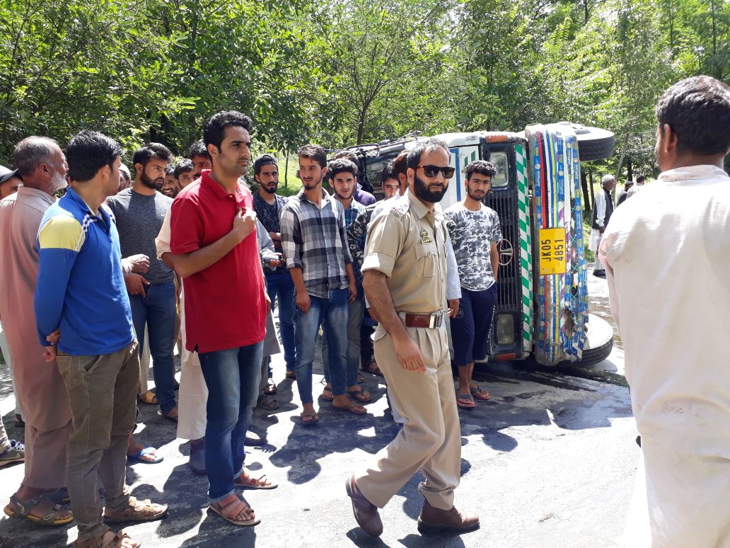 Locals told Kashmir Images that a mini bus bearing registration number JK05-4851 on its way to Khaitangan from Baramulla turned turtle at Nowpora village today morning, leaving ten passengers injured.