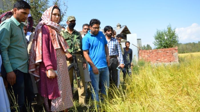 BUDGAM, SEPTEMBER 14: Deputy Commissioner (DC) Budgam, Dr Syed Sehrish Asgar, today visited several hailstorms hit areas in Magam and Narbal tehsils to assess the crop damages.