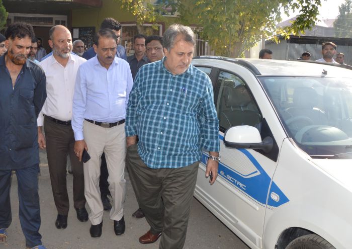 SRINAGAR SEPTEMBER 25: Principle Secretary Transport and Animal, Sheep Husbandry, Fisheries Department, Asgar Samoon today test drove the first Electric Car introduced by State Motor Garage (SMG) here in Valley.