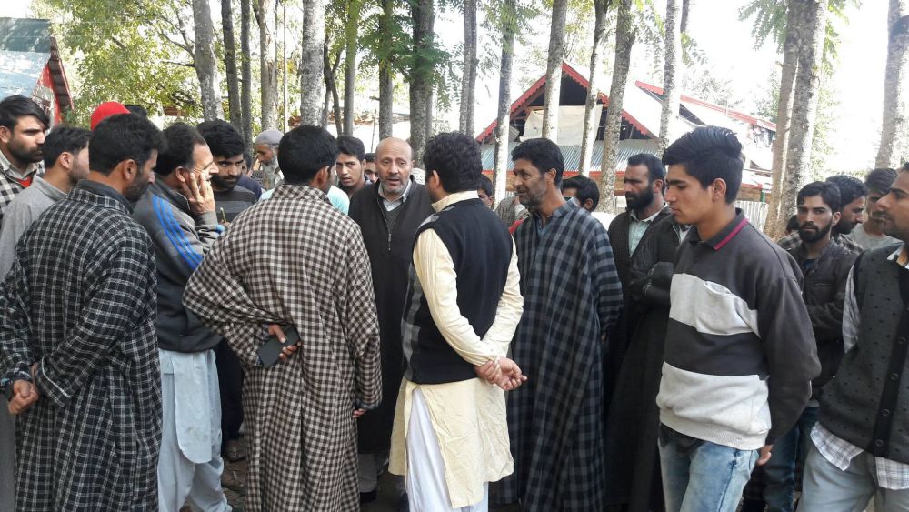 Langate, October 13: AIP President Er. Rasheed today Saturday the encounter site at Shartgund Bala village and adjoining areas where the scholar-turned-militant Manan Wani and his associate Aashiq Zargar Rasheed were killed in a gunfight on Thursday.