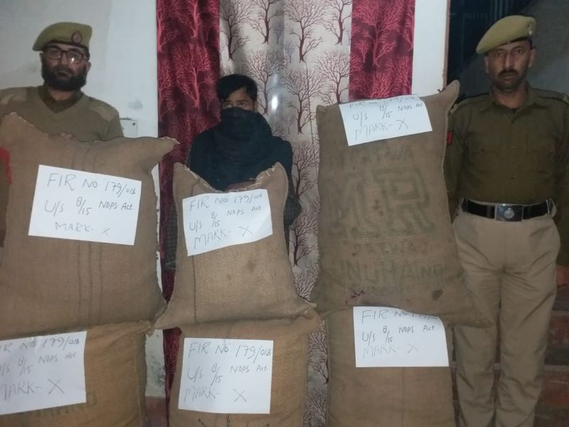 In a statement issued here, a police spokesman said: “Continuing its drive “war against drugs”, Anantnag police arrested a drug peddler and recovered huge quantity of dried bhung from his possession.”