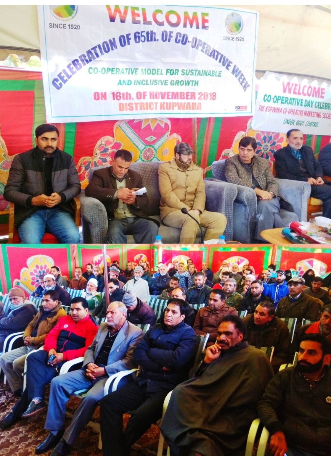 ADDC Kupwara, M Y Mir, DGM Central Cooperative Bank Baramulla, Deputy Registrar Cooperative Societies Srinagar HQ, Assistant Registrars of block Rajwara, Trehgam, Kupwara, managers of Cooperative Marketing Societies and members of cooperative societies attended the day-long celebrations of 65th National Cooperative Week.