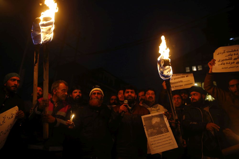 JKLF organizes peaceful protests against HR violations at different places in Srinagar on Monday. PHOTO/Javed Khan