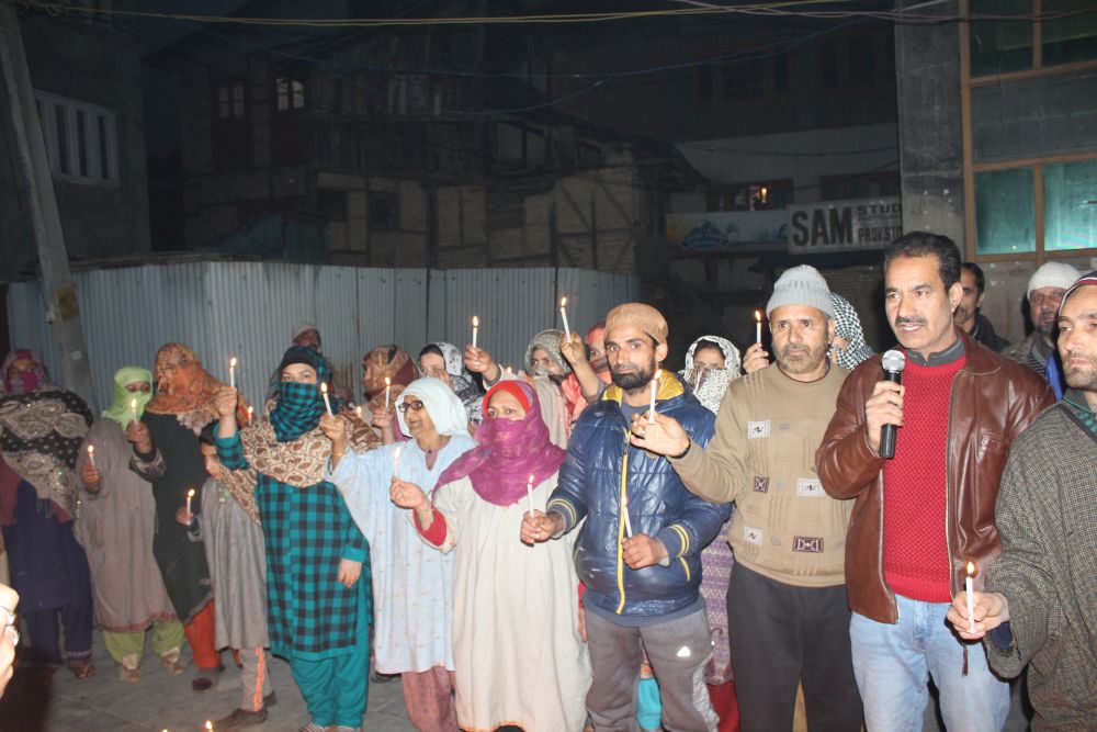 JKLF leaders and activists held candle light protests at different localities of Srinagar including Maisuma, Abi-Guzar and Soura today against alleged human rights abuses.