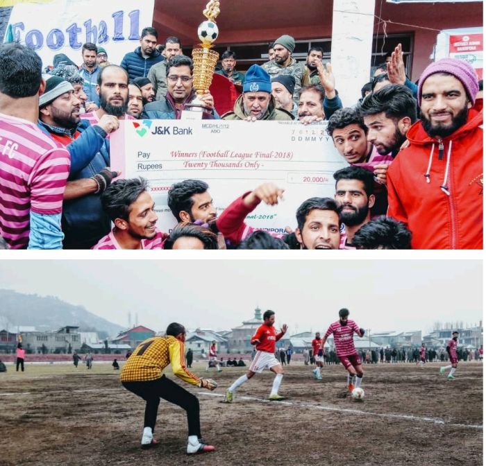 BANDIPORA, DECEMBER 10: Hashmee Football Club Bandipora on Monday lifted the winners’ trophy of District Football League 2018.