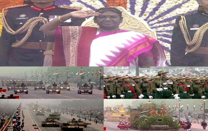 New Delhi, Jan 26 (PTI) India’s military prowess infused with a spirit of ‘aatmanirbharta’ and diverse and vibrant cultural heritage were showcased on the Kartavya Path as the nation celebrated its 74th Republic Day on Thursday.