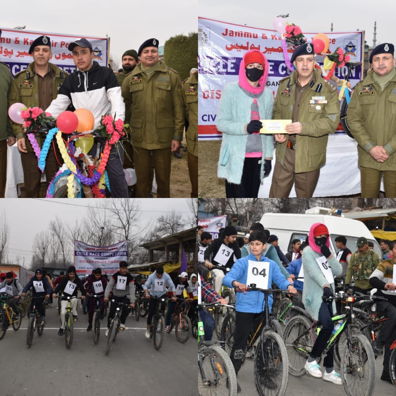Srinagar: Under the aegis of the Civic Action Programme (CAP), the Police organized a cycle race in Pulwama in which students of various schools of the district participated.