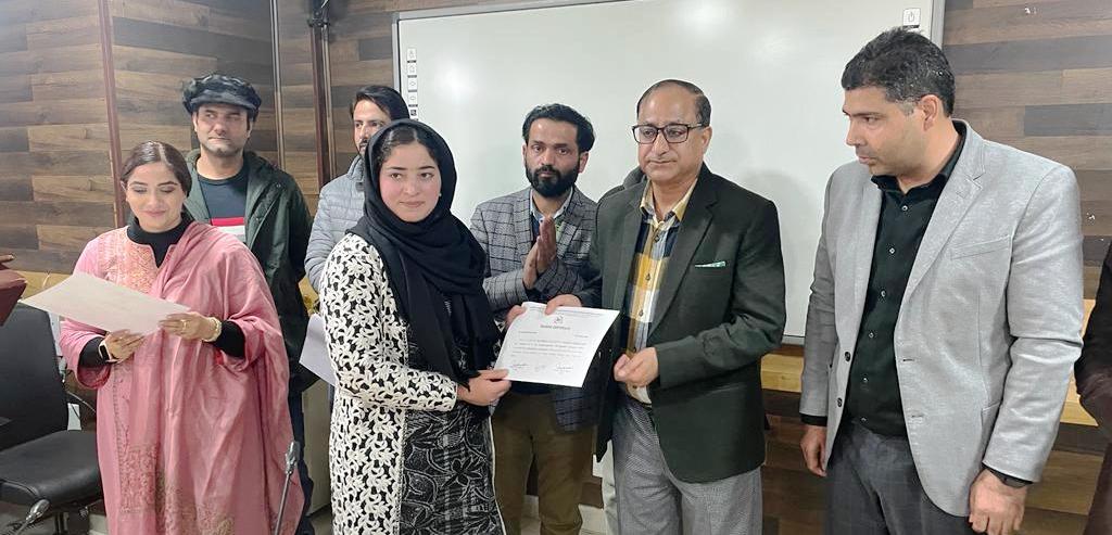 SRINAGAR: The Director Jammu and Kashmir Entrepreneurship Development Institute, Ajaz Ahmad Bhat, today felicitated aspiring young women entrepreneurs from Pulwama on the completion of their training conducted under Mission Youth’s Tejaswini livelihood scheme at the Pampore campus.
