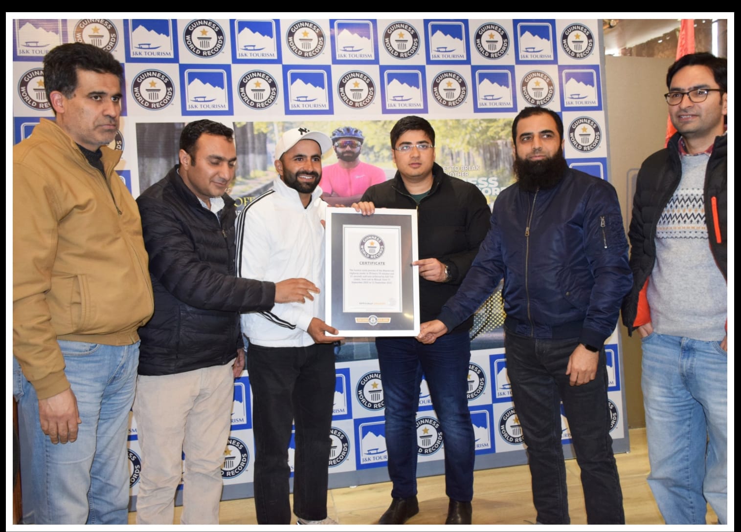 Adil, a resident of Narbal in Baramulla district, cycled from Leh to Manali in a record time. He peddled the high altitude and arduous path from Leh to Manali – a distance of 470 km – in 29:18:21 hours, thus breaking the earlier record set in 2020 by Bharat Panu who finished the track in 35 hours, 32 minutes, and 22 seconds on October 11, 2020.