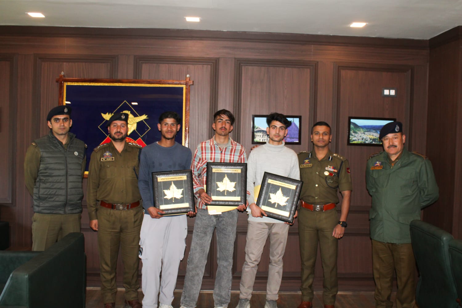 According to a press release, these three brave youths who were felicitated include Saqib Ahmad Gojri son of Ghulam Ahmad Gojri resident of Qazi Hamam Old Town Baramulla, Wamiq Parveiz Kullu son of Parvaiz Ahmad Kullu resident of Ganie Hamam Baramulla, and Sahil Ahmad War son of Late Wali Mohammad War resident of Gulnaar Park Baramulla for showing an act of bravery while saving 02 precious lives from drowning in river Jhelum at Suspension Bridge Dewanbagh Baramulla and Cement Bridge Baramulla in two different incidents. “They were felicitated with tokens of appreciation, mementos, and cash rewards.”