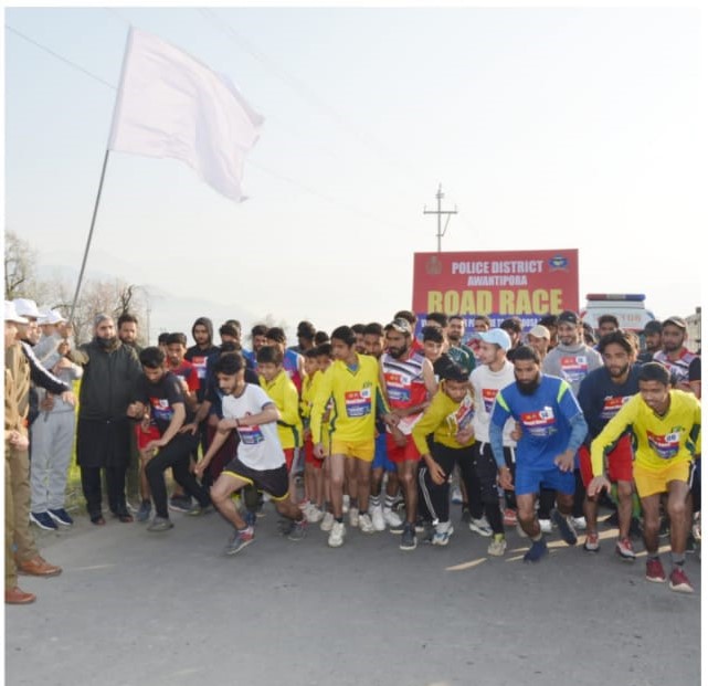 Srinagar: Under the aegis of the Civic Action Programme, Police District Awantipora organized a road race in Pampore in which youth of Sub-Division Pampore participated.