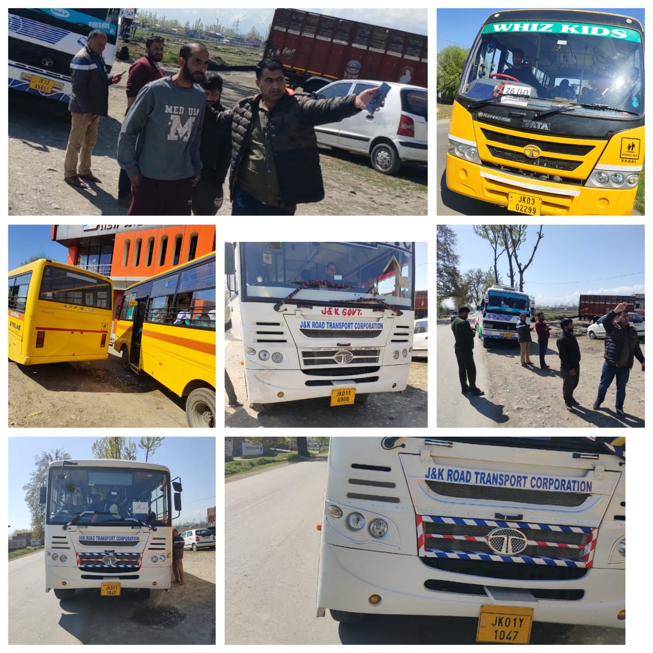 ANANTNAG: A team from Motor Vehicles Department (MVD), headed by ARTO Anantnag Dr Mohammad Zubair, today laid special nakka at different locations to check violations of the various visible offenses under Motor Vehicles Act, 2019 and Central Motor Vehicles Rules 1989.