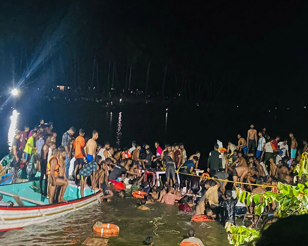 Twenty two people, including women and children, were killed when a houseboat carrying over 30 passengers overturned and sank near the Tuvalthiram beach in Tanur area of Malappuram district on Sunday.