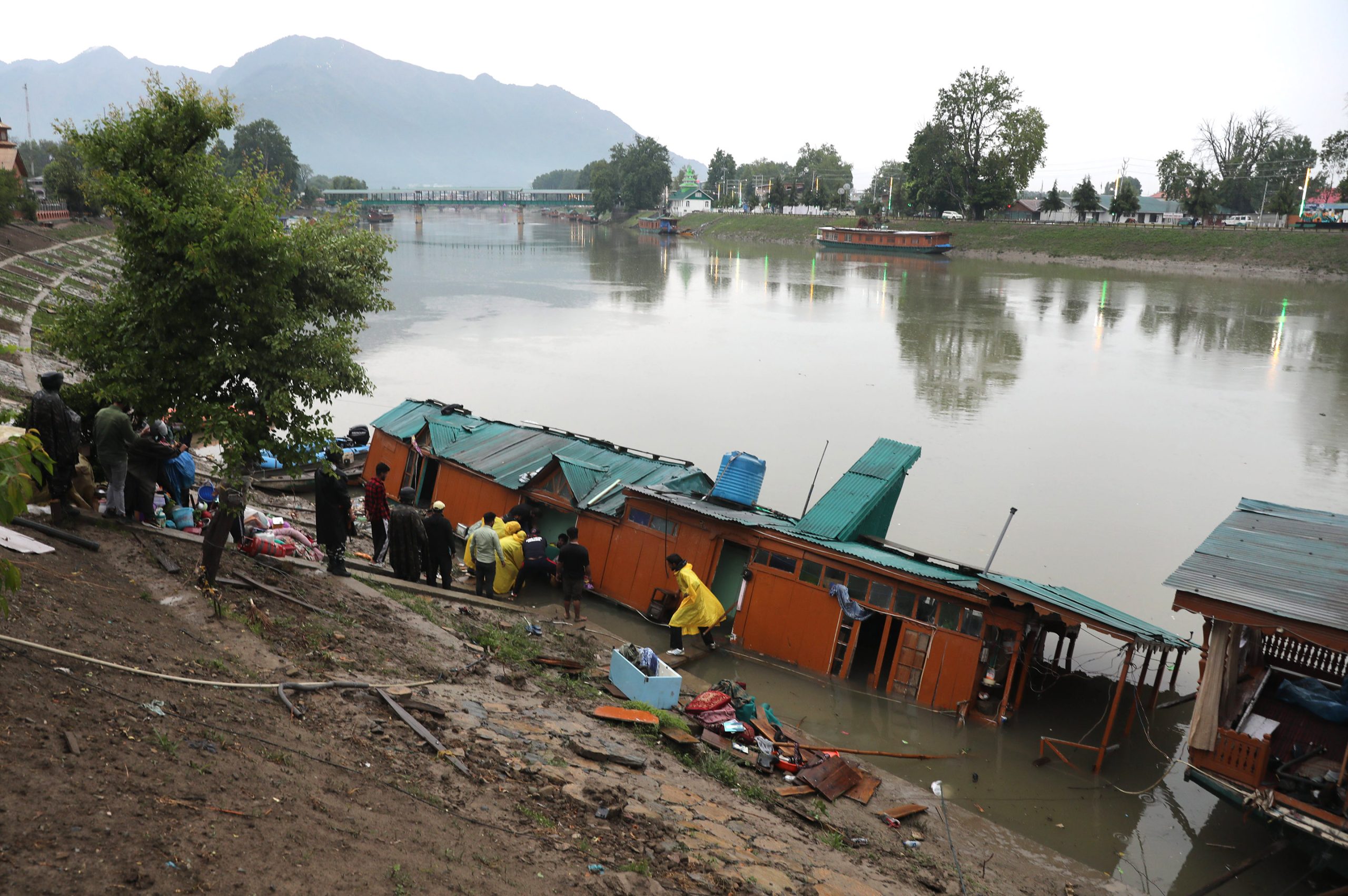 A residential houseboat sunk in river Jhelum this afternoon following the gusty winds, however, no loss of life or injuries were reported.