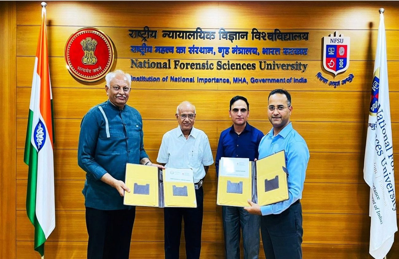 Professor S O Junare, Campus Director-NFSU-Gandhinagar; C D Jadeja, Executive Registrar, NFSU, Professor Purvi Pokhariyal, Campus Director-NFSU-Delhi, Air Commodore, Kedar Thakaar, Dean, School of Police Science and Security Studies, NFSU, Professor, Satish Kumar, Dean, School of Forensic Science, and other officers were also present during the signing of MoU.