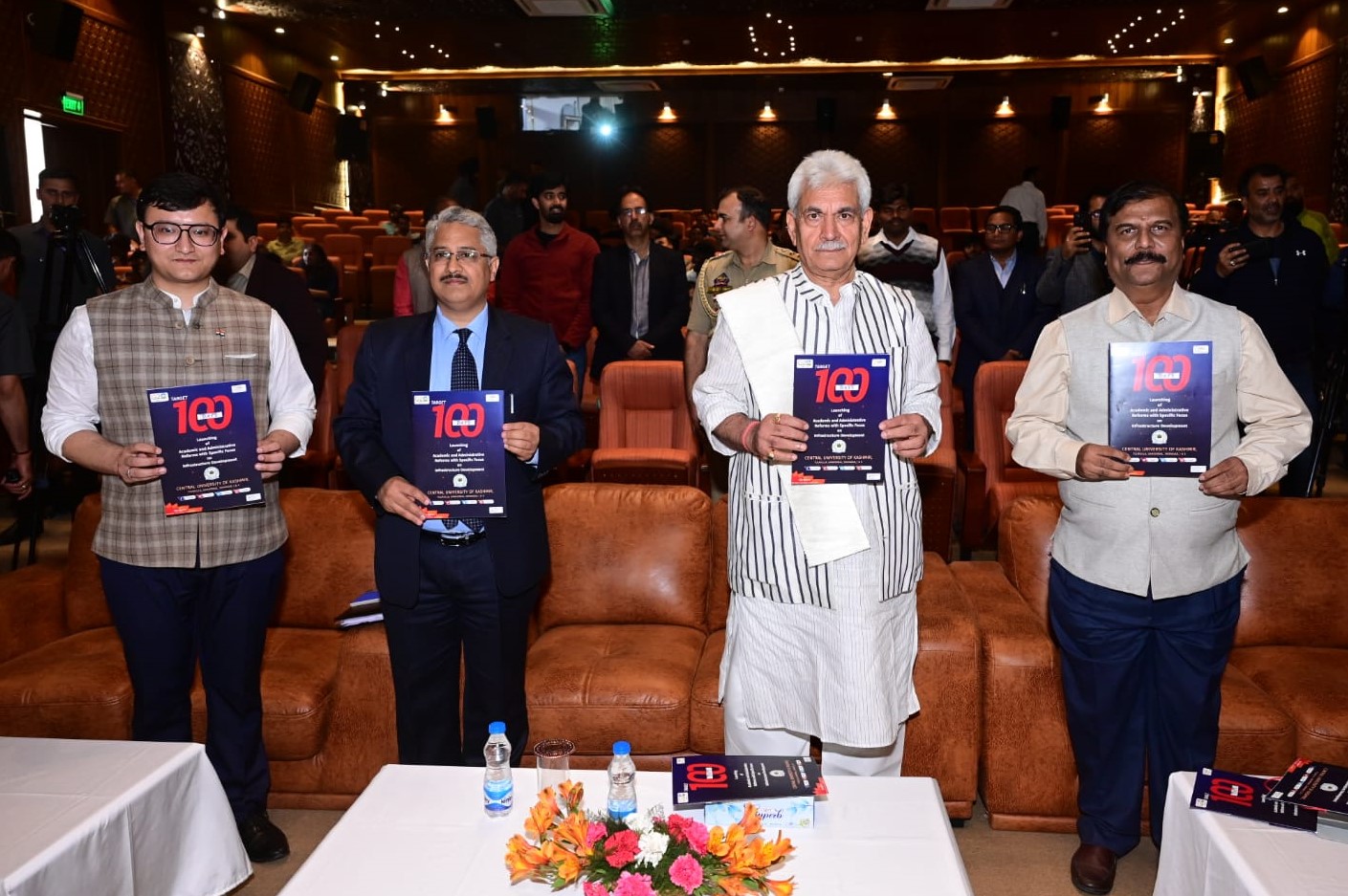 Srinagar: Lieutenant Governor Manoj Sinha today released the brochure of the Central University of Kashmir “Target 100 Days for Launching of Academic and Administrative Reforms with a Specific Focus on Infrastructure Development”.