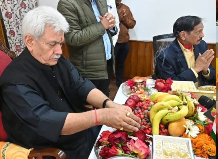 Lieutenant Governor Manoj Sinha joined the “Pratham Puja” (first puja) via video conferencing.
