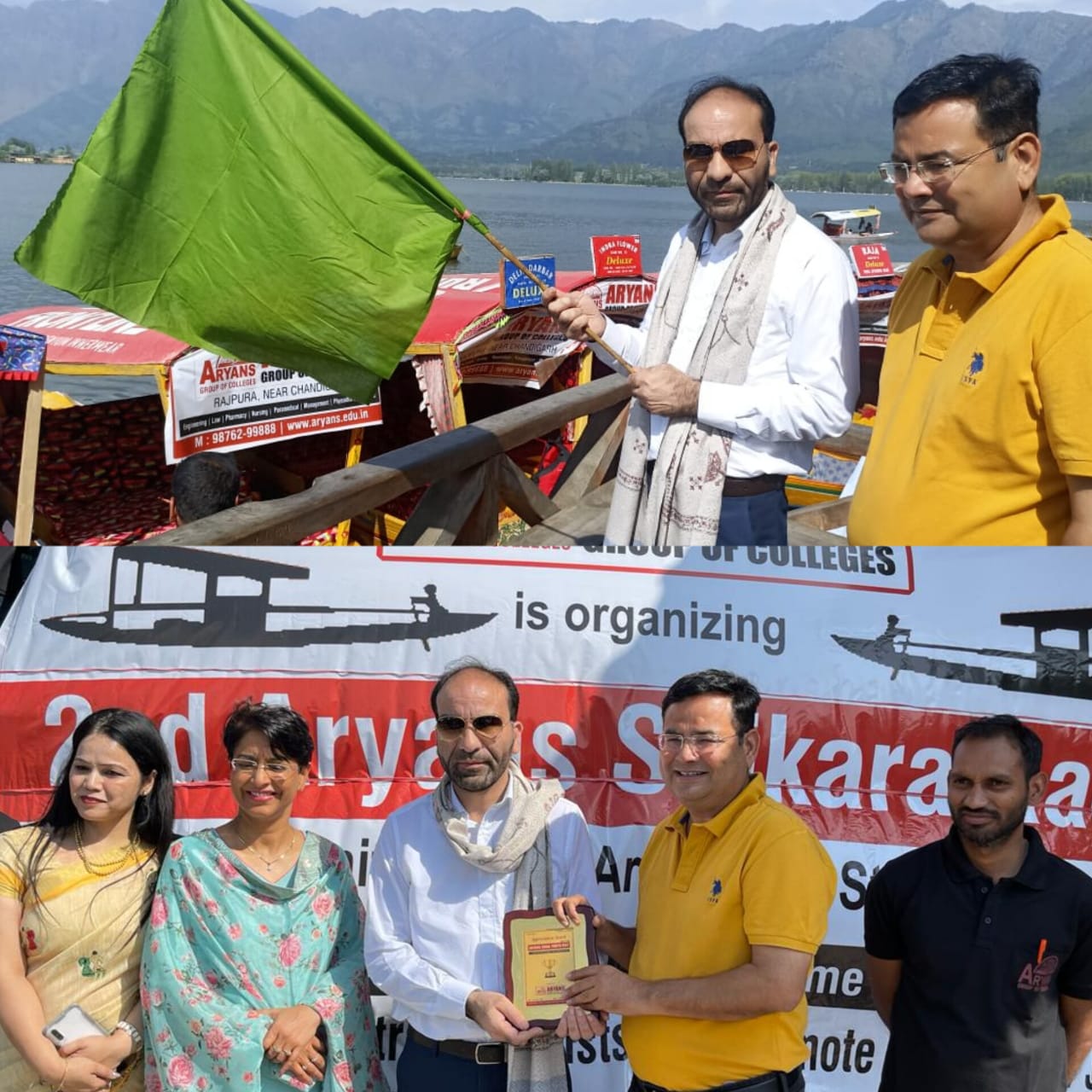 SRINAGAR, JUNE 11: The Sub-Divisional Magistrate East Srinagar, Murtaza Ahmad on Sunday flagged off the 2nd Shikara Race here in world famous Dal Lake in the presence of Chairman, Aryans Group of Colleges, Rajpura, Dr. Anshu Kataria.