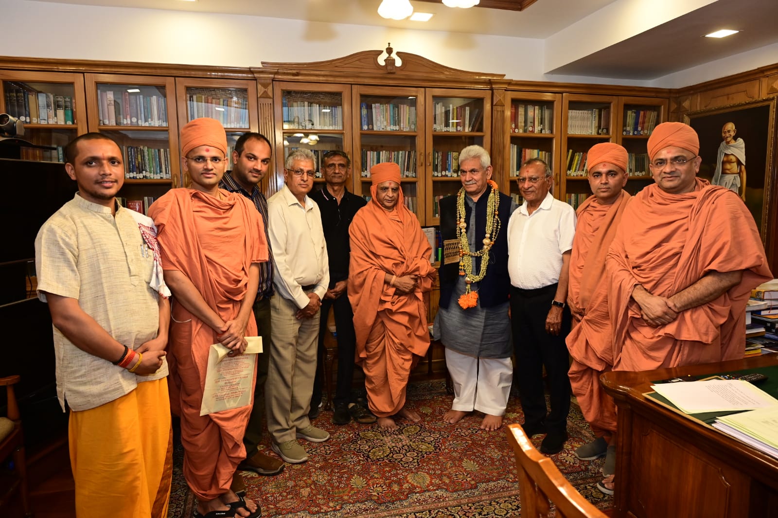 SRINAGAR: Swami Madhavpriyadas, Chairman, Shree Swaminarayan Gurukul Vishwavidya Pratishthanam (SGVP) called on Lieutenant Governor Manoj Sinha at the Raj Bhavan today.