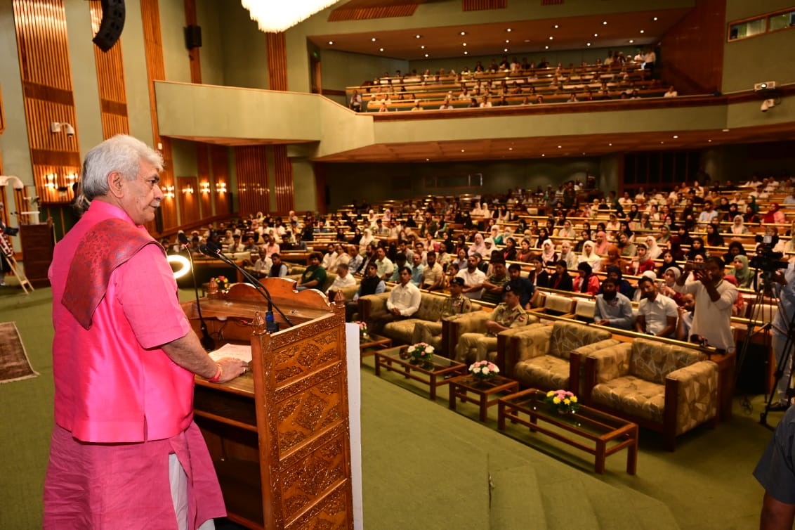 Srinagar: Lieutenant Governor Manoj Sinha today addressed the Medhavi Chhatra Samman Samaroh organized by Amar Ujala Group in Srinagar and felicitated the meritorious students of class 10th and 12th, an official press release informed.