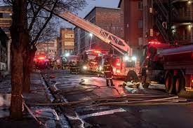 A video posted by Mulaudzi on X, formerly known as Twitter, showed fire trucks and ambulances outside the building with burnt-out windows.