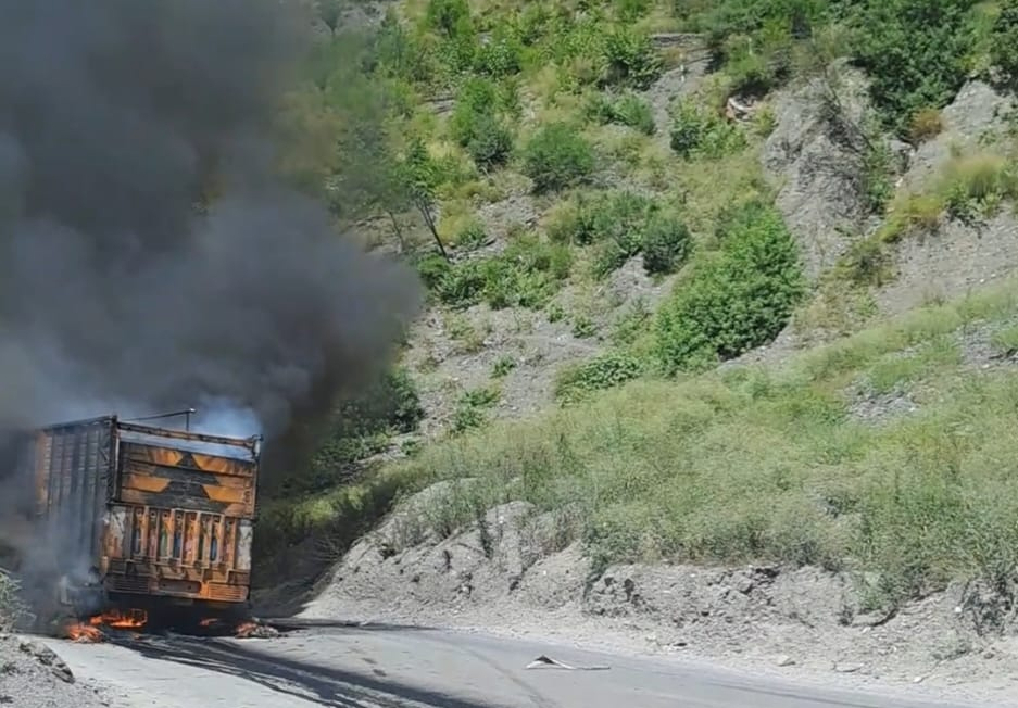 They said fire and emergency services immediately rushed to the scene and doused the fire. The truck was on its way to Kashmir from Jammu.