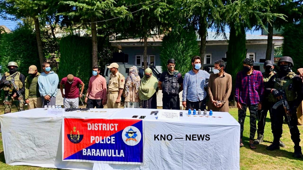 Addressing a press conference at Baramulla, Senior Superintendent of Police (SSP) Barmulla Amog Nagpure said that on police have arrested active LeT terrorist and five terrorist associates in Baramulla and recovered huge quantity of arms and ammunition including grenades and pistols from them