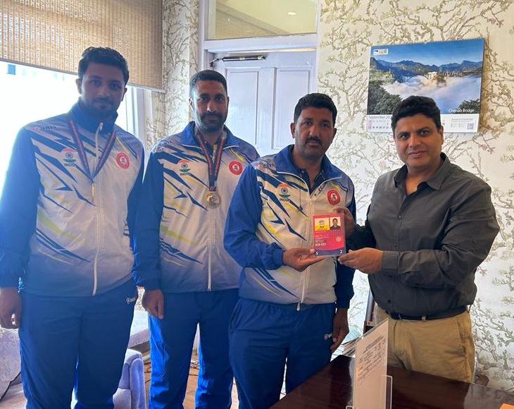 SRINAGAR: Gold medalist of the 16th International Dragon Boat Federation (IDBF) World Dragon Boat Racing Championships, Zahoor Ahmad, Zain Ul Aabidin and Coach Farooq Ahmad Bhat today called on Secretary, Youth Services and Sports, Sarmad Hafeez, at civil Secretariat, Srinagar.