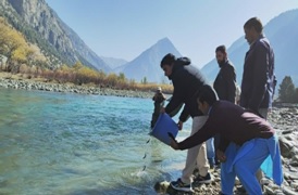 BANDIPORA: Director Fisheries, Mohammad Farooq Dar today initiated the stocking of an impressive 5,000 trout fingerlings in the Kishenganga River with an aim to bolster the local economy by promoting sustainable fisheries and generate employment opportunities in the Gurez sub-division of the district.