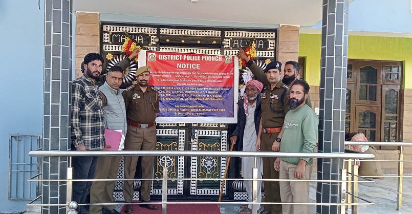 Poonch: Police on Wednesday attached movable and immovable properties belonging to three “notorious” drug peddlers in Poonch district, a police spokesperson said.