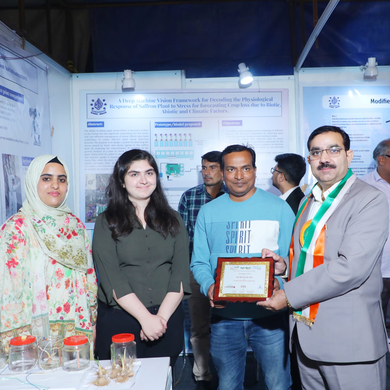 Among the standout exhibits was a groundbreaking project entitled “A Deep Machine Vision Framework for Decoding the Physiological Response of Saffron Plant to Stress for Forecasting Crop loss due to Biotic, Abiotic and Climatic Factors” presented by Miss Ishrat Nazeer (Research Scholar) and Anan Kataria (BTech CSE Student), under the supervision of Dr. Ranjeet Kumar Rout, Assistant Professor Department of CSE, NIT Srinagar.