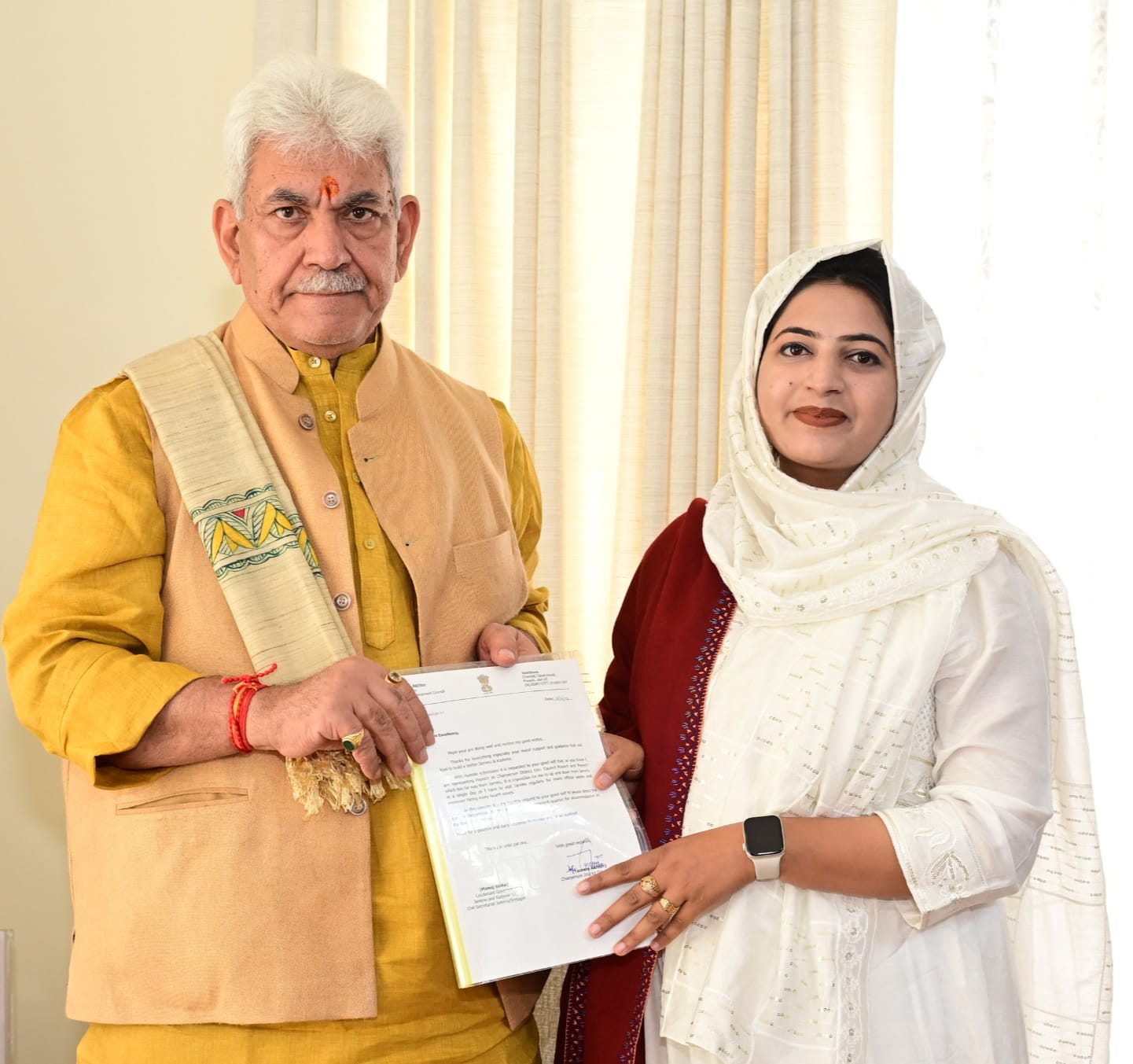 JAMMU: Tazeem Akhter, Chairperson of District Development Council Poonch called on Lieutenant Governor Manoj Sinha at Raj Bhawan today.