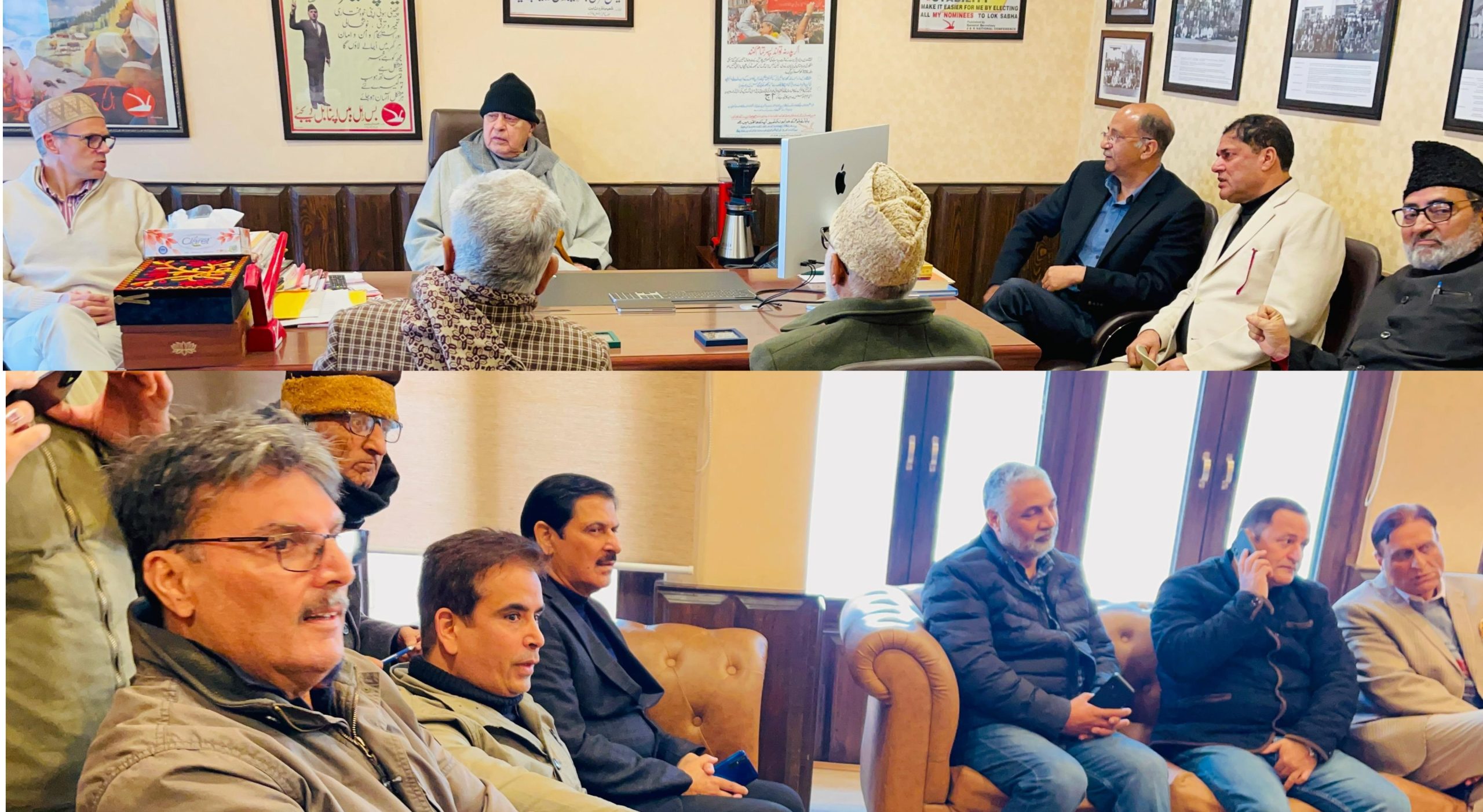 Srinagar: The Jammu and Kashmir National Conference President and Member of the Parliament from Srinagar Dr Farooq Abdullah met party leaders at party headquarters in Nawa-e-Subha, Srinagar.