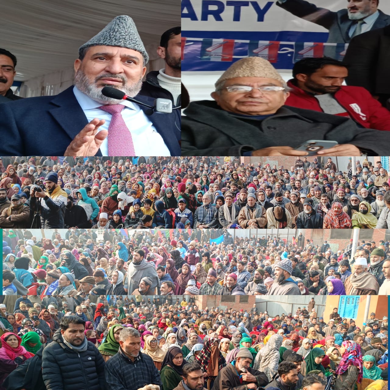 The rally was organised by a joint team of Apni Party workers from Kunzer. People, men and women, from Tangmarg and adjoining areas thronged the rally. They gave a rousing reception to the party president and his accompanying leaders on their arrival at the venue.