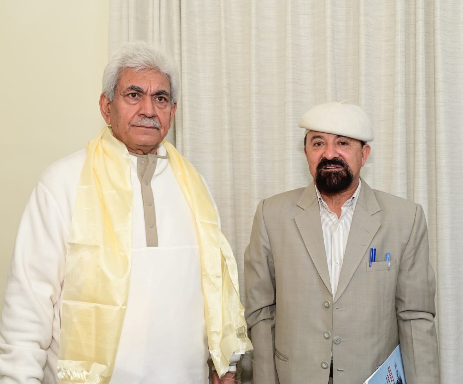 Jammu: Dr Mohd Jaffer Akhoon, Chairman of Ladakh Autonomous Hill Development Council Kargil called on Lieutenant Governor Manoj Sinha at Raj Bhawan, today.