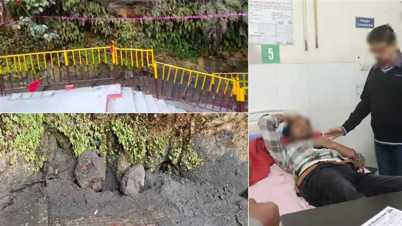 Seeing the stones rolling down from the mountain, people started moving helter-skelter leading to a stampede, which caused injuries to nine devotees.