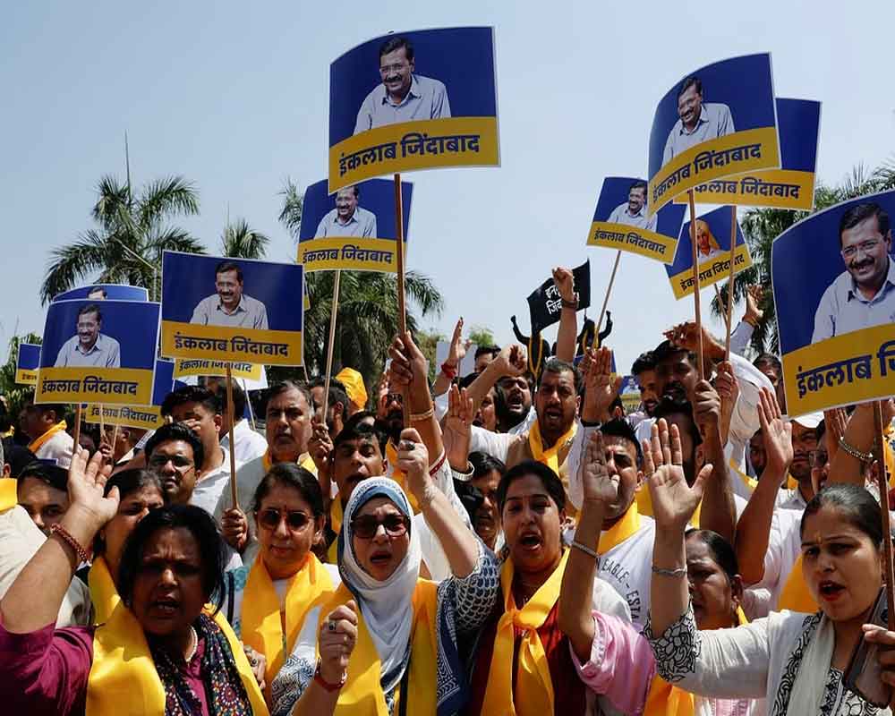 The anti-BJP grouping consisting of more than two dozen parties reiterated commitment to their united struggle against the Modi government’s “tyranny”. Political workers cutting across party lines braved scorching heat to register their protest against Kejriwal’s arrest by the Enforcement Directorate last week.