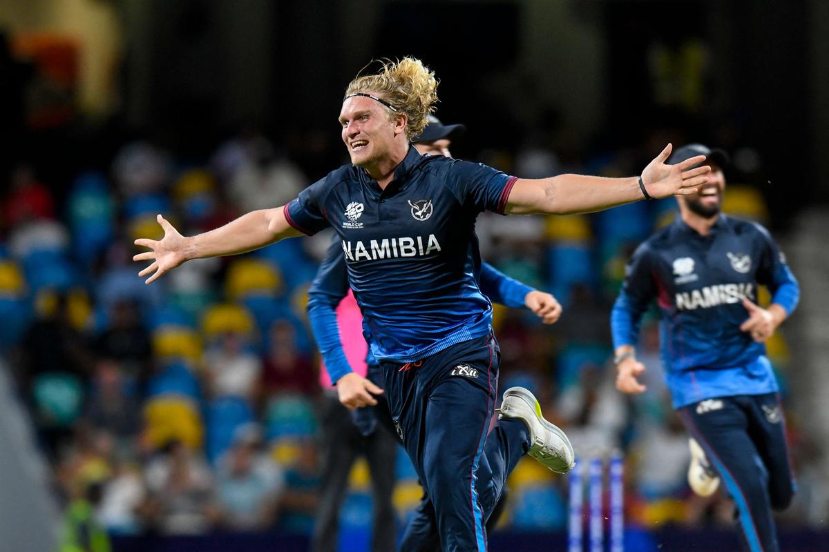 Bridgetown (Barbados): Namibia’s Ruben Trumpelmann became the first player to take wickets in the first two deliveries of a T20 international as his team beat Oman via the Super Over in a thrilling T20 World Cup match here.