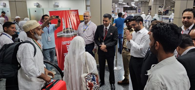 BUDGAM: The Deputy Commissioner (DC) Budgam, Akshay Labroo along with SSP Budgam, Nikhil Borkar received the first batch of 320 Hajj pilgrims at Srinagar International Airport from Saudi Arabia.