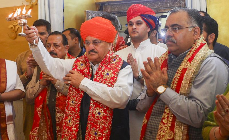 Accompanied by Union minister Jitendra Singh and BJP national general secretary in-charge of Jammu and Kashmir Tarun Chugh, Nadda was received at the temple by party leaders, including MP Jugal Kishore and former minister Priya Sethi.